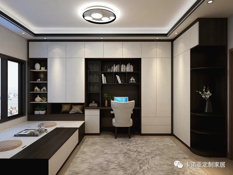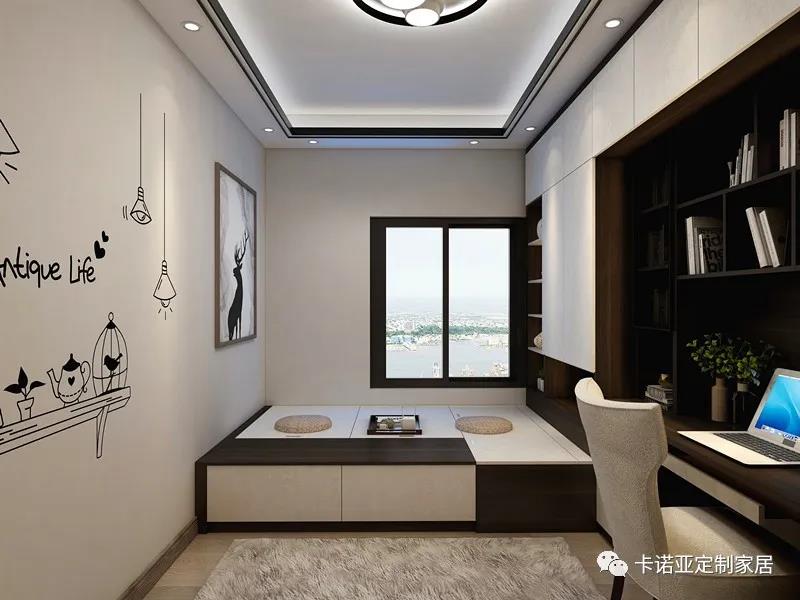 榻榻米、衣柜、书柜、书桌一体化设计,