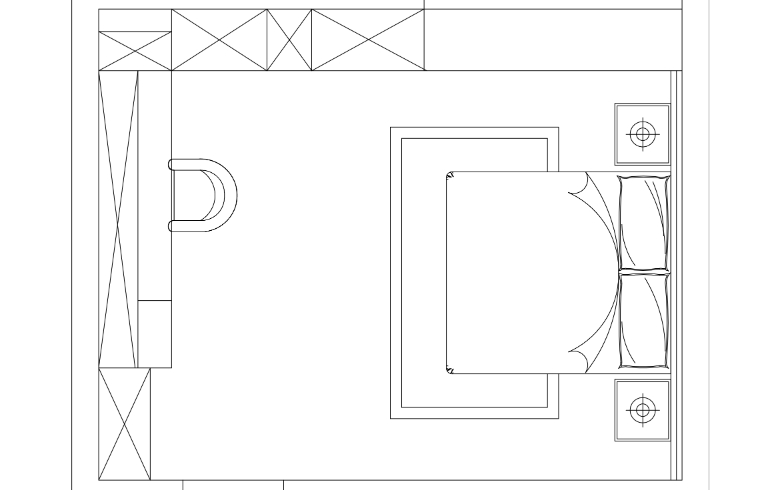卧室空间大,床头可以不靠墙,使用一个梳妆台隔断,直接多出一个梳妆区域,梳妆台靠近衣柜,日常换衣化妆都很方便,也节省了空间。