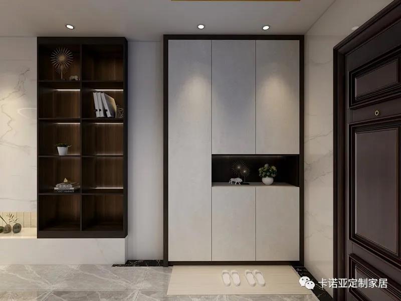 柜体采用三段式设计,造型整体,收纳容量大,中间开放格放置绿植、饰品,温柔的迎接归家的人。