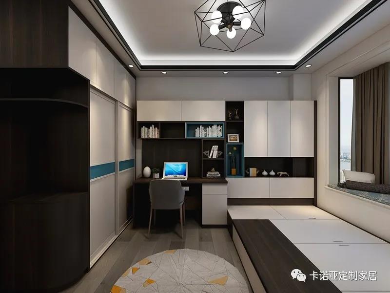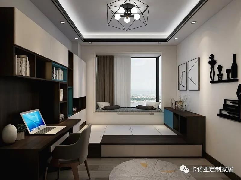 榻榻米、衣柜、书柜、书桌一体化设计,