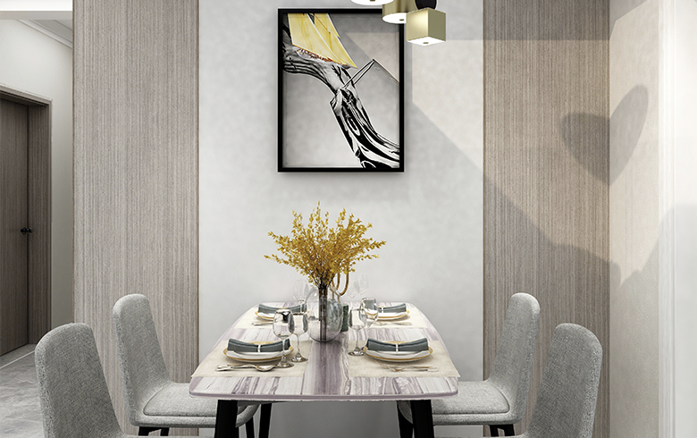 从玄关到客厅,再至餐厅,厨房,卧房,书房,空间主角都是灰色,白色,温馨的银丝木与珍珠白的柜体突显优雅又带来温馨的家氛围。