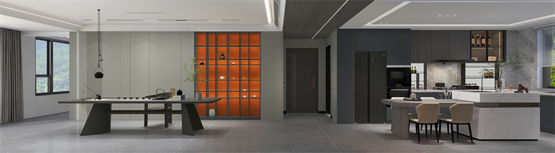 本案以现代极简风,采用黑白灰的色彩基调,三色过渡简单自然,彼此映衬,让人置身于一种静谧的家居氛围。空间中的橙色点缀,仿佛一术光,照亮了整个黑暗,生活需要光的指引,只要我们不断追逐,光永远在我们前方!设计理念:用有限的空间,做无限的设计,彰显个性之家。整家之美|第五届卡诺亚杯全国家居空间设计大赛