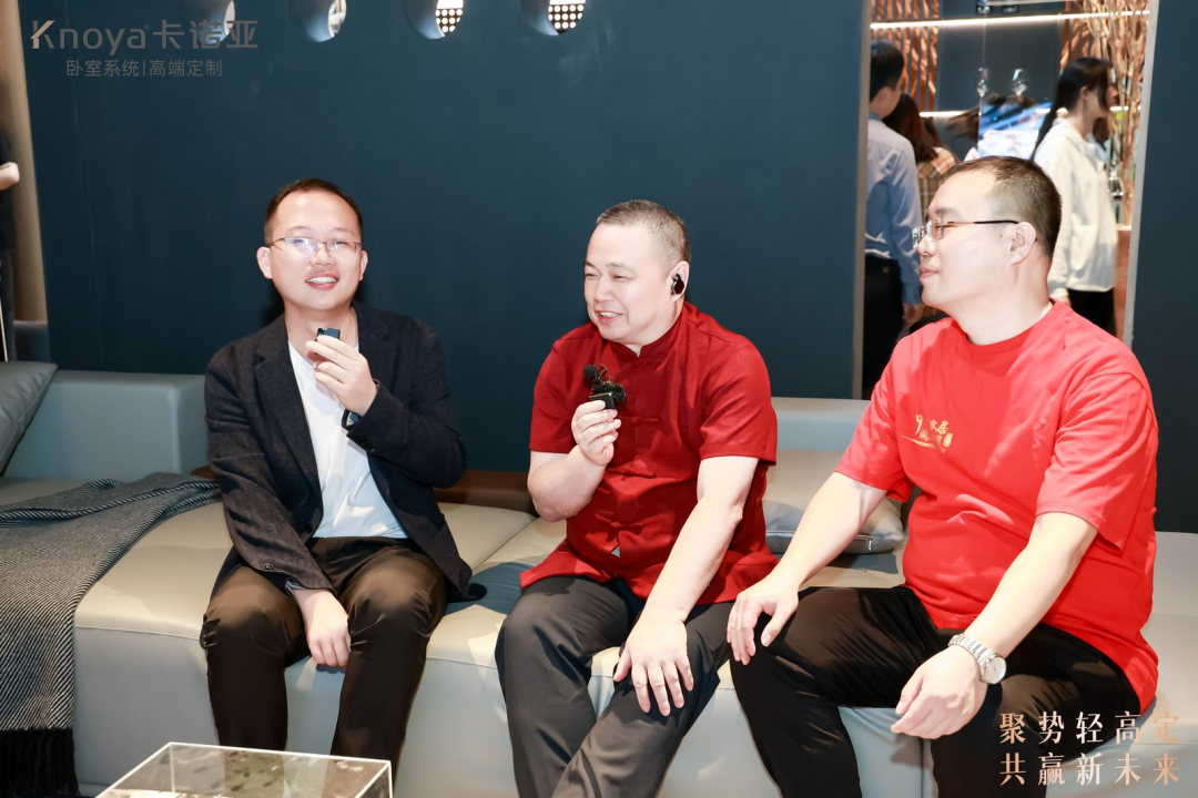从“旦哥说app”和“建材家居探店官—娜仁格日勒”两大家居行业知名博主现场观察情况来看,卡诺亚展会现场新品的场景化呈现,明显让经销商、消费者及行业设计师直观感受到其终端销售场景的具象化表达。这种去概念化的产品表达方式,实现了两大核心突破,第一是通过空间情绪设计与生活场景还原,直接消解了消费者对轻高定的认知壁垒;第二是为经销商提供可复制的营销场景与销售逻辑,构建起清晰的终端沟通体系。