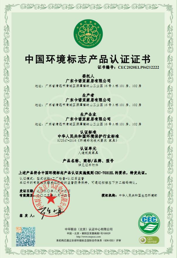 环保等级越高,甲醛释放量就越少,所以大家要认准环保标准,卡诺亚不管是基材还是辅料,所有产品均已达到国标E1级或更高的E0级(企业标准,甲醛限量≤0.5mg/L)环保标准,这才是安全健康的选择。